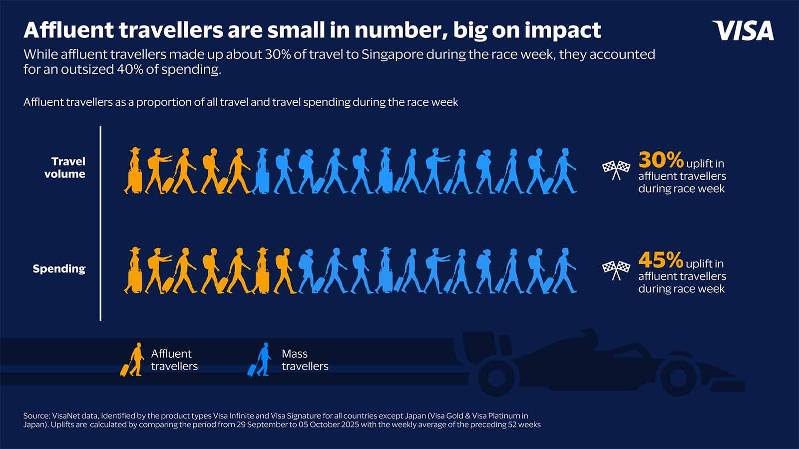 1 Visa has no commercial affiliation or sponsorship relationship with Formula 1™. All insights and data provided are based on VisaNet data from 29 September to 5 October 2025 during the week of the Singapore Grand Prix.
