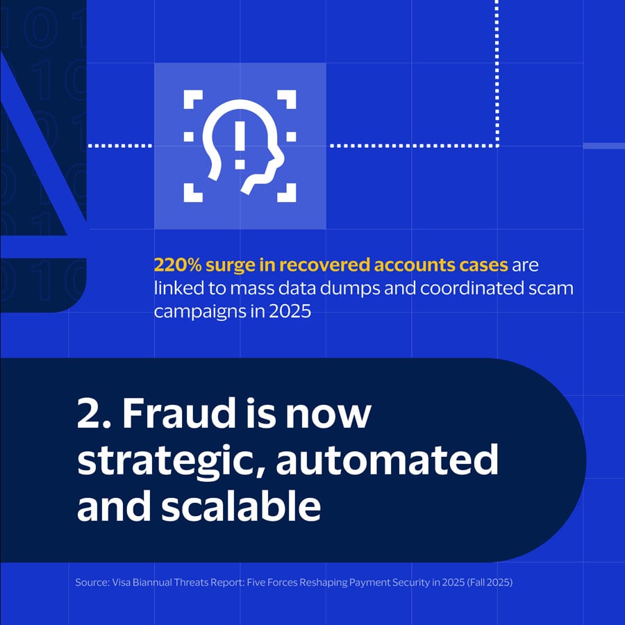 ² Visa Biannual Threats Report: Five Forces Reshaping Payment Security in 2025 (Fall 2025) - https://corporate.visa.com/content/dam/VCOM/corporate/visa-perspectives/security-and-trust/documents/biannual-fall-2025-public-final.pdf